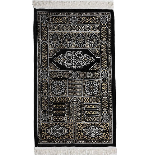 Luxury Woven Chenille Islamic Prayer Rug Kaba Door Intricate Design - Black